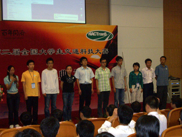 在赵亚男老师的带领下,交通工程系四位同学2007年05月24日出发,到上海参加决赛。2007年05月26日进行决赛,宋素娟、魏贺两位同学在赛场上展示BB贝博艾弗森官方网站的作品,并进行答辩。2007年05月27日上午举行颁奖典礼,魏贺同学代表BB贝博艾弗森官方网站参赛队上台领奖,并预祝2008年将在四川省成都市西南交通大学举办的第三届全国大学生交通科技大赛圆满成功。