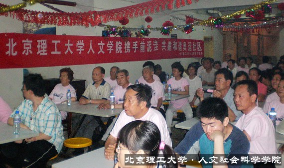 6月8日下午,人文学院骨干志愿者走进了丰台区前泥洼社区,和社区居民共同分享奥运理念。