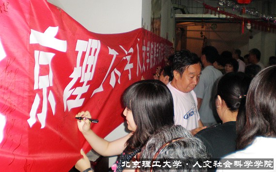 接下来,社区居民和志愿者同学一起,在本次活动的横幅上留下了对2008北京奥运的深切祝福。