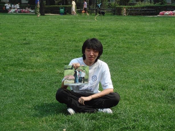 席地而坐,在茵茵绿地上,多么亲密的宿舍小家庭