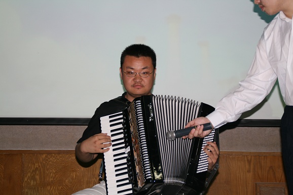 最后是此次大赛的重头戏——选手的才艺展示环节,生命学子展现了各自精彩纷呈的才艺,雷笑、丁凯同学带来了配乐诗朗诵,秦虓同学表演了手风琴独奏,杨康昕、张巍波、周晞晔同学带来的是独唱,耿岩松同学与班级其他3名同学进行了共同演唱,体现了优秀的团队精神。