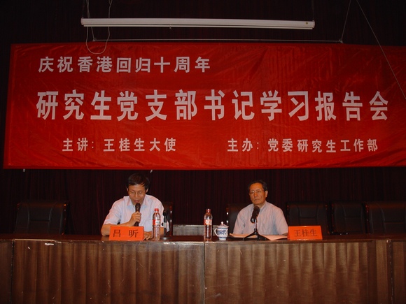为庆祝七一建党86周年与香港回归10周年,党委研究生工作部邀请原外交部港澳事务办公室主任、中英联合联络小组中方首席代表王桂生大使来BB贝博作《中英关于香港问题的谈判》的报告。6月27日晚,在七号教学楼报告厅王大使的报告会如期举行。出席报告会的有研究生院常务副院长吕昕老师、党委研究生工作部部长肖文英老师、副部长魏名山老师,全校研究生党支部书记以及对香港历史与发展感兴趣的同学。
