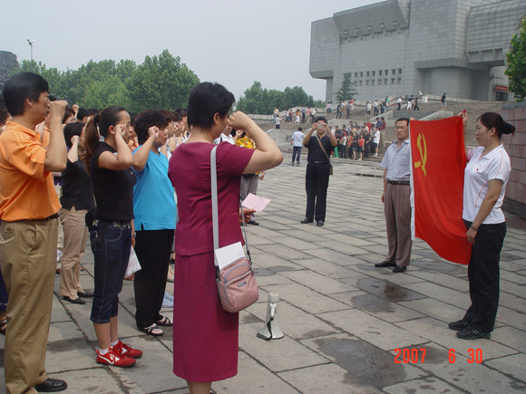 2007年6月30日,在建党86周年前夕,后勤集团110余名党员冒着沥沥细雨,前往天津平津战役纪念馆开展党日参观活动。