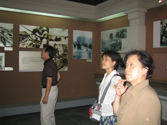 随后,我们参观了序厅、战役决策厅、战役实施厅、英烈业绩厅等展厅,观看了珍贵的历史文物、文献和大量的图表、景观、雕塑、绘画等。在多维演示馆,观看了运用电动沙盘,全面、真实地再现平津战役全过程的多媒体环幕电影,深深为壮观的战争场面所打动,感到今天的幸福、和平生活来之不易。