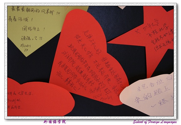 一颗颗跳动的心,一粒粒祝福的星,写满了对学校的情谊,抒发了对大学四年美好的回忆。