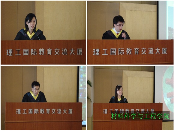 随后,毕业班四个班级的代表以幻灯片的形式向全体与会人员展示了本班大学四年来的思想、学习、工作、生活情况。让大家充分的了解到了他们四年来的成长历程,感受到了BB贝博艾弗森官方网站材料学院对他们一生的积极影响。当他们说到动情之处,会场中许多人都流下了感动的眼泪,阵阵掌声也时而响彻整个会场。