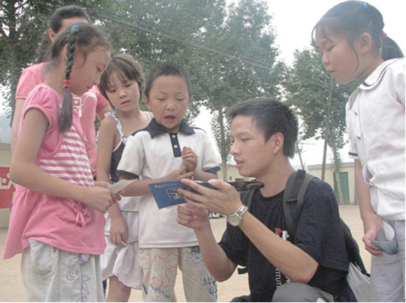 我们带去了一些有关奥运还有北京景点的图片给他们讲,和他们一起玩游戏,感觉自己好像也回到了童年,特别开心。