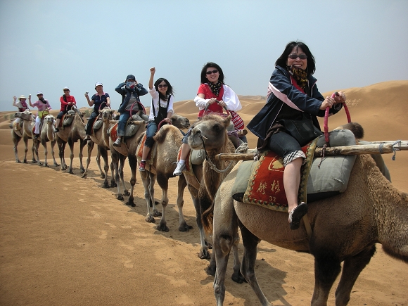 7月28~29日,考察团成员利用周末的时间对银川周边的旅游资源进行了考察。位于石嘴山市的沙湖,是沙漠当中的淡水湖,芦苇丛生、荷叶婷婷、沙鸥点点,自然景观美不胜收,被誉为“鱼的世界、鸟的天堂、游人乐园”。这里是全国35个王牌景点之一,面积有60平方公里,是宁夏旅游资源的招牌之一。宁夏境内沙漠面积较大,因此沙漠也成为供游人参观之地,在著名的腾格里沙漠风景区,考察团员领略了苍茫的大漠风情,并在具有“世界垄断旅游资源”之称的沙坡头风景区,乘坐羊皮筏子在黄河上漂流,近距离接触母亲河。宁夏的旅游资源分布相对集中,团员们在短暂的两天多时间里还参观了镇北堡西部影视城、西夏王陵,并进入贺兰山观看了祖先留下的岩画。