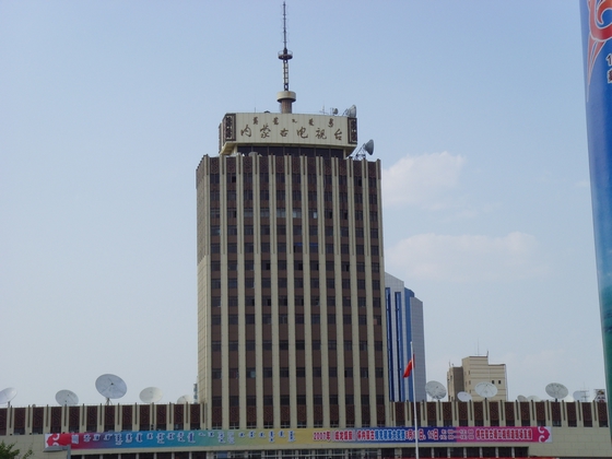 当来到新华广场的时候,广场的石凳上坐满了休憩的市民,他们安静恬淡的看着广场上的屏幕,放松着自己的身心。广场中央摆放着用各种颜色的植物制作的内蒙古自治区60年大庆的造型,绿色为主的色调,给人耳目一新,欣欣向荣的感觉。放眼眺望,当看到曾经是内蒙古自治区最高的建筑物的内蒙古电视台的大楼时,它已不再骄傲,它的周围已经是高厦林立,这些现代化的建筑着实让这年代稍长的“长辈”略显逊色。