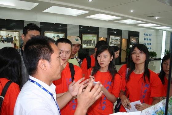工作人员为实践团的成员详细介绍伊利的生产线,大家都积极的做着笔记。