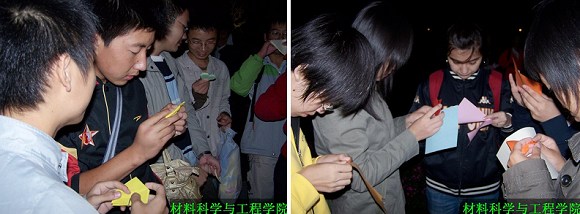 下车以后,奥运志愿者们带领材料学院的新生们开展了“折千颗心,送千份愿”奥运主题活动,期望增强同学的奥运兴致,让同学们有机会表达自己的奥运志愿。大家折出了一枚枚漂亮的“心”,然后用这些“心”拼成了2008的字样,相信每个人都在心底写下了对08年奥运会的深深祈盼与祝福。