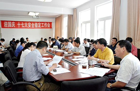 2007年9月25日上午,学校主楼四层会议室召开迎国庆 、十七大安全稳定工作会。党委副书记侯光明参加并主持会议,参加会议的有各分党委(党总支)直属党支部书记和综合治理责任单位负责人。