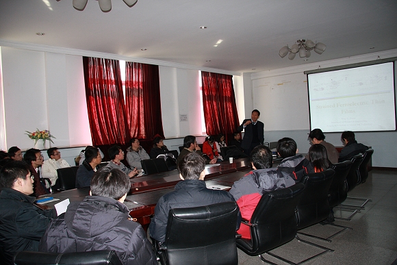 报告会上,张统一教授介绍了错配应力对铁电薄膜材料性能的影响。从热力学,介电和铁电性能,一阶和二阶相变等材料科学基本概念出发,介绍了这一先进铁电材料研究领域的前沿进展。同时张教授勉励学院师生在与时俱进的时代,要具有创新思想、观念和研究方法。张教授的演讲内容丰富、前沿,让大家了解到学科的未来发展趋势,受益匪浅。