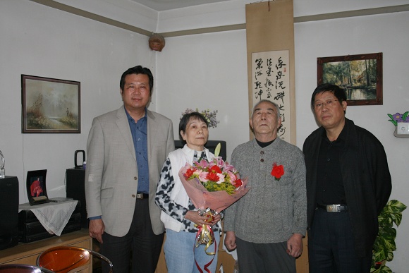 外国语学院另一对金婚夫妇杨志茹、赵安华因身体原因未能出席此次大会。外国语学院领导带着学校和学院的问候来到老教师位于北航的家中进行慰问和祝贺。吴树敬院长,王文清书记及林彤院长给老教师们送去了金婚贺礼,并与老教师们进行了亲切交谈,了解老教师的身体及其他情况,并且祝愿老教师们身体健康长寿。