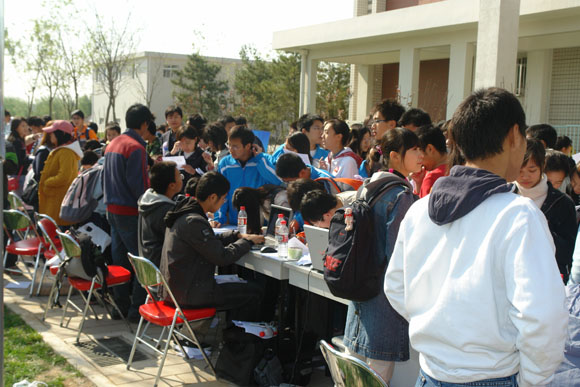 良乡校区新生积极踊跃地报名参加各个学生组织,下午的面试工作安排的异常紧凑。