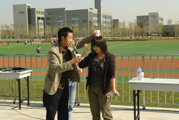 校团委代方震、衡靖、刘亮老师和新校区学生管理办公室郭彦懿、丛磊老师在巡礼现场与同学们就学生活动在新校区的开展进行了交流。在此次巡礼活动中,BB贝博部分社团在南园操场主席台进行了精彩的表演。