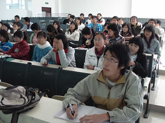 田成同学准备了丰富的图片资料,包括本校区的各季景色,校风校训的石刻,北理工浪漫或伤感的一幕幕……加强了对新生爱校情绪的培养。接下来,田成同学又结合自己大学四年的学习和生活经验,给新生提出了一些忠告,比如严格遵守考试纪律、把大部分精力放在学业上等等等等。而后,他向大家展示了大学生活中丰富多彩的一面。随后田成同学又展示自己了去山西支教一年时间内工作和生活的照片。支教生活中有苦有乐,有深深的感动,有离别时的不舍……丰富多彩的生活深深打动了同学们,并带动了现场的气氛,大家开始主动提出问题,各抒己见,深深为田成同学丰富的人生经历所折服。