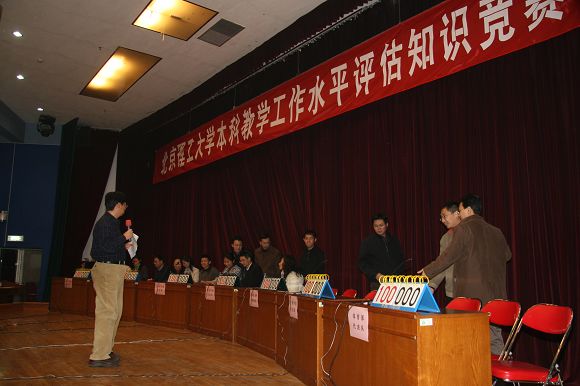 为迎接国家教育部本科教学工作水平评估,按照本科教学工作水平评估的有关要求和师德师风建设的有关规定,为促进全校教职员工深入开展有关知识的学习,校工会、教务处于11月7日在中心教学楼一层报告厅举办了“BB贝博艾弗森官方网站本科教学工作水平评估及师德师风建设知识竞赛”活动。全校共18个代表队、近100名队员参加了比赛。参加本次知识竞赛活动的还有各学院和部门的领导、教职工代表300余人。