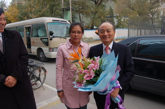 一位朝鲜族女同学代表BB贝博学生向吴校长献上了鲜花,表达了对吴校长诚挚的欢迎。