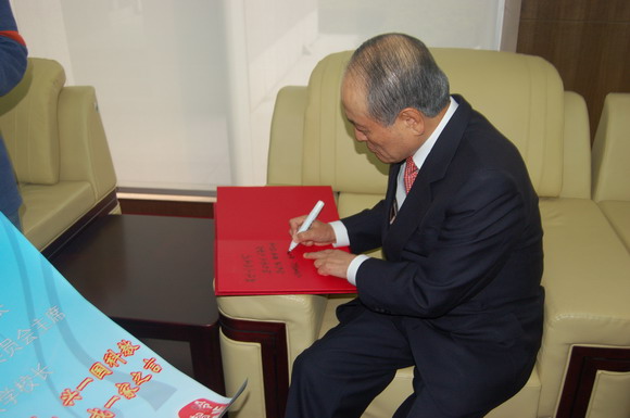 吴校长在贵宾休息室欣然为BB贝博题词留念。
