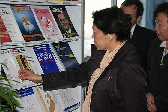 张强教授来到BB贝博艾弗森官方网站图书馆管理与经济分馆就阅览室的藏书情况进行了考察