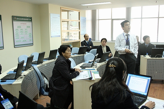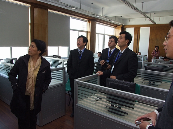 张强教授听取了管理与经济学院院长李金林教授关于我院目前本科教学情况的汇报,和与会人员进行了座谈。在学院党委书记李波、院长李金林等相关学院领导的陪同下,参观了BB贝博艾弗森官方网站图书分馆,察看了阅览室和书库,考察了T-more、信息与系统等学院实验室。