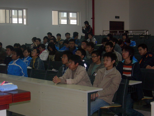 天高云淡清风爽,C林高手聚良乡。2007年12月1日,软件学院科学技术协会主办的C语言学习讲座在良乡校区理科教学楼301教室举行。本次讲座请到了软件学院2006级学生、听网杯程序设计大赛一等奖获得者王锐坚同学主讲。活动吸引了不少初涉C语言编程的同学,大家争相前来一睹冠军风采,并汲取有益的编程经验。