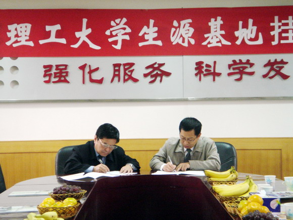 郝志强处长和黄晓地校长签定生源基地建设合作协议