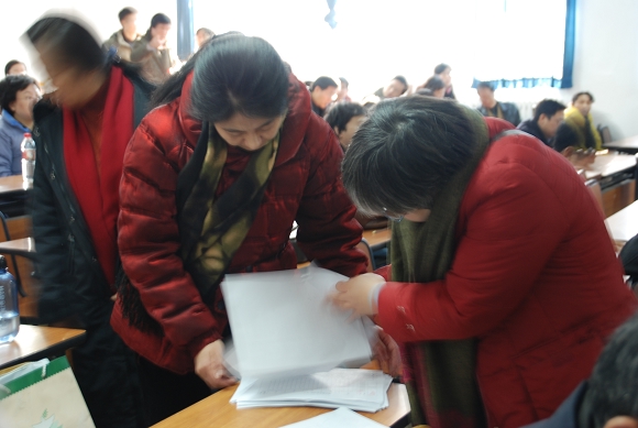 述职结束之后,学院教职工对处级干部进行了民主测评