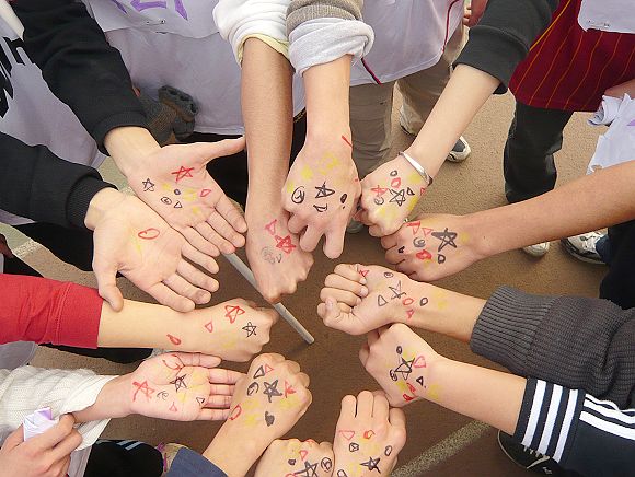 在一个多小时的赛程中,当有队员在趣味环节中发挥不太好时,队里没有埋怨,只有大家的相互鼓励和必胜的信心,当有的队员体力不支时,全队都会给他加油鼓劲,做他坚实的精神支柱,当最后离终点只有百米时,六双手紧紧的拉在一起,排成一字,整齐的冲过终点,“we are number one ! we are the champions !”队员们一起欢呼。