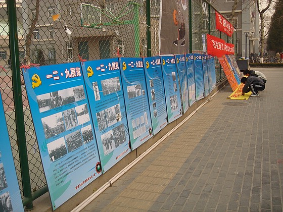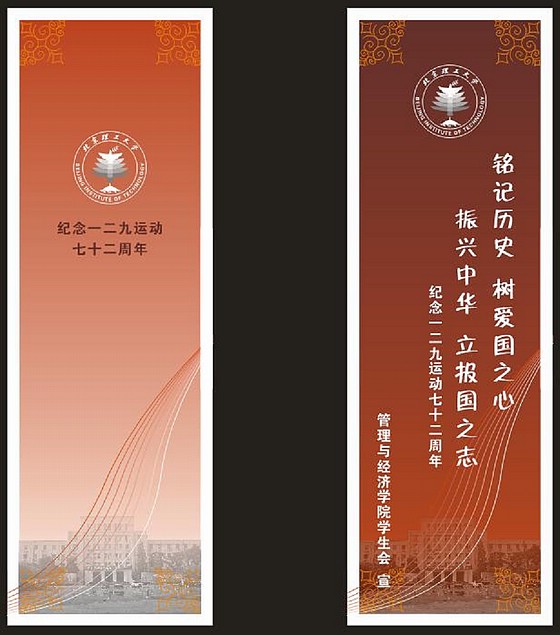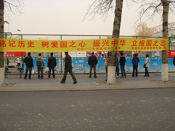2007年12月9日,管理与经济学院的同学在新食堂的对面举办了有关纪念“一二.九”学生运动七十二周年的展览活动,本次活动以“铭记历史  树爱国之心  振兴中华  立报国之志”为主题,向同学们介绍了“一二.九”学生运动的原因,过程及影响,让同学们了解历史,铭记历史,增强同学们的爱国意识,进一步深化爱国情怀!