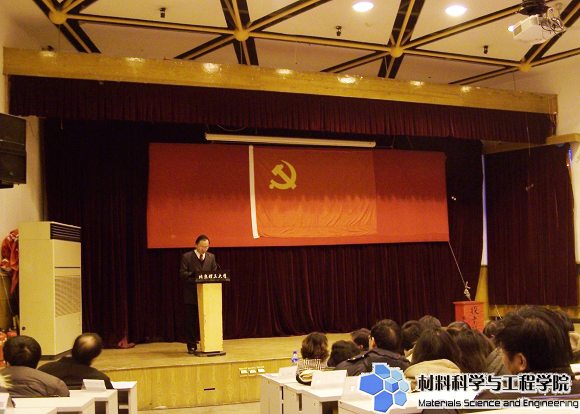 2007年12月25日下午,材料科学与工程学院在七号楼报告厅隆重召开全院党员大会。副校长李和章、党委组织部部长龚裕、材料学院分党委书记张德平、院长王鲁、副院长杨荣杰、副院长曹传宝、副院长刘颖、副院长刘景胜、副书记副院长韩笑出席了本次大会。材料科学与工程学院各教工党支部、学生党支部全体正式党员和预备党员参加了本次会议。