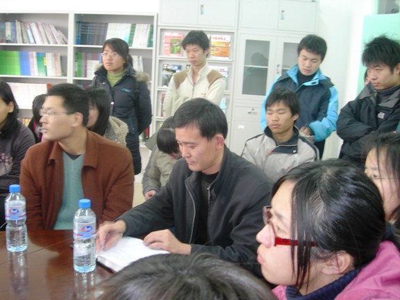 当天,邓玉林院长还与其所联系的班级——06110702班的同学一起召开了一次特别的班会,班长吴国松同学介绍了班级的基本情况,院长也给班级的同学提出了要求和希望,一定要努力学习,发扬团队精神,将班级建设成为一个真正团结奋进的优秀集体。