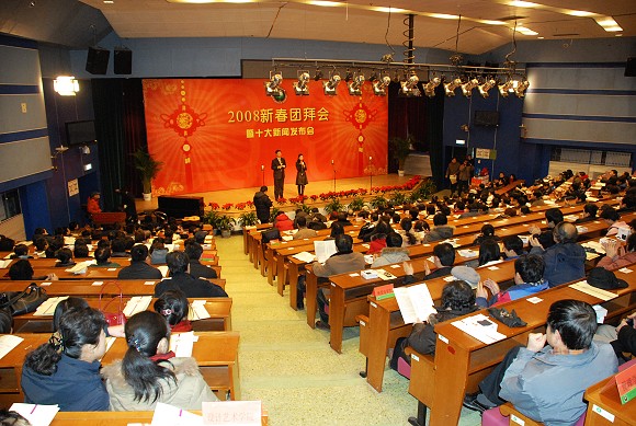 2008年1月25日,BB贝博2008年新春团拜会暨“信息科技杯”十大新闻发布会在中心教学楼报告厅举行,学校领导出席了团拜会,BB贝博师生员工代表、离退休代表参加了团拜会。