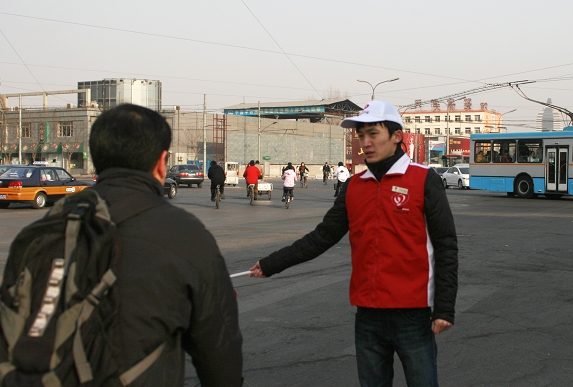 为了保证“两会”的顺利召开,协助交警维持繁华路段交通秩序。3月5日,十余名信息学院奥运志愿者在院分团委书记程斌、副书记高路的带领下,来到广安门内大街的虎坊桥、菜市口、牛街、白广路四个路口对行人和非机动车辆进行指挥疏导。