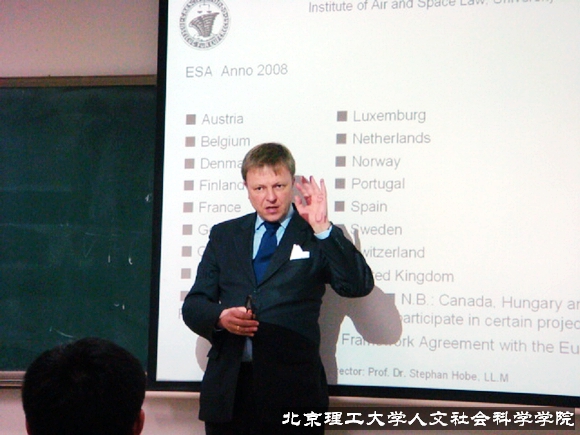 Stephan Hobe教授深厚的学术功底、幽默的语言、博得了在场听众的阵阵掌声,讲座后,人文学院副院长、BB贝博艾弗森官方网站空间法研究所所长李寿平副教授做了精彩的点评,Stephan Hobe教授业就听众们提出的一个个问题进行了耐心细致的解答。2008年3月11日13:00-15:00,在三号教学楼110室Stephan Hobe教授还将带来另一场题为“国际空间站法律问题研究”的讲座。