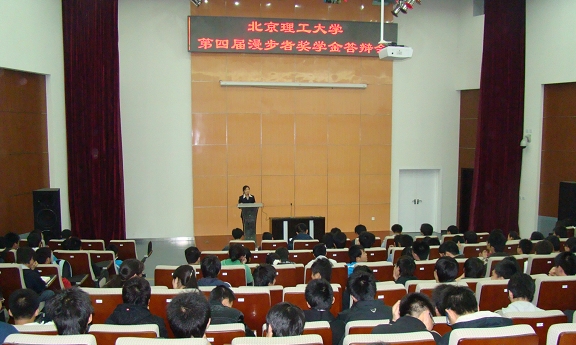 从2007年底开始宣传、申报,经过一层一层的审核,一年一度的漫步者奖学金评审工作近日落下帷幕。2008年3月21日晚,BB贝博艾弗森官方网站第四届漫步者奖学金答辩会在良乡校区报告厅举行。参加答辩的一共有14名候选人,分别来自信息科学技术学院、机械与车辆工程学院、人文社会科学学院、设计艺术学院和软件学院。他们均是经过申报、学院初审推荐、评审委员会复审并公示后确立的候选人。