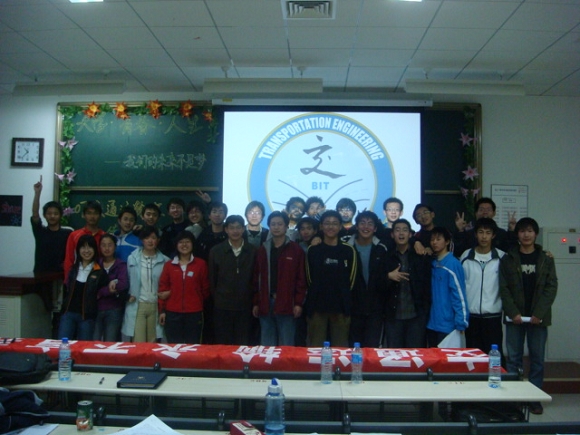 2008年3月26日晚七点,机械与车辆工程学院交通运输专业03420701班在良乡校区理科教学楼109教室举行了主题为“大学、青春、人生——我们的未来不是梦”德育答辩开题报告会。
