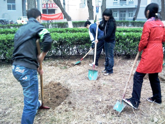 绿化活动开始后,在李兰东书记的带领下,老师和同学们挥锹抡镐,一派热火朝天,此次校园绿化活动的主要任务是深翻绿地,在大家都一起努力下,我院所负责的区域不到一小时就解决了“战斗”。随后,大家一鼓作气,协助兄弟学院,共同完成了本次绿化活动。