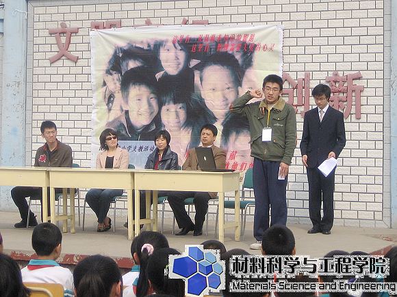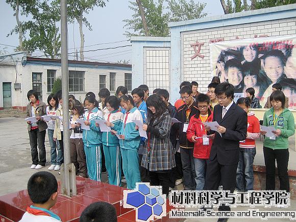 4月7日,材料科学与工程学院面向全校大一学生开展了主题为“放飞爱心的翅膀,传播知识的力量”赴西营小学支教志愿者招募活动,本次活动得到了良乡校区同学们的积极响应。在宣传员耐心细致的讲解下,很多学生都在报名表上留下了自己的姓名和联系方式,并纷纷表示愿意尽自己最大的努力去帮助西营小学的小朋友们。仅一个小时的时间里志愿者协会就收到了近350名同学的注册信息。4月11日,材料学院支教活动在西营小学正式启动。材料学院副书记副院长韩笑,学院分团委副书记、07级辅导员李紫千,西营小学校长梁亚男,德育校长史瑞芹出席了启动仪式,材料学院志愿者代表和西营小学全体师生参加了启动仪式,仪式由材料学院志愿者代表龚宏强主持。