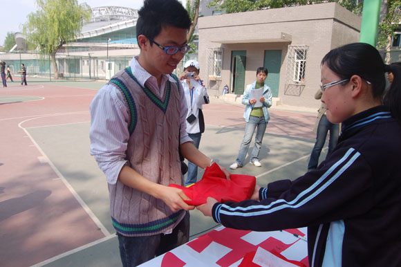 2008年4月23日下午2:30在BB贝博艾弗森官方网站新食堂北侧,一场由BB贝博艾弗森官方网站学生会、BB贝博艾弗森官方网站研究生会、BB贝博艾弗森官方网站社团联合会联合发起的主题为“‘国旗在我心中’——把在北理飘扬过的五星红旗捐献给海外爱国同胞”的活动隆重举行。校团委、学生工作处、各学院核有关部处的部分老师及相关学生组织负责人、捐献国旗的学生代表参加了活动。