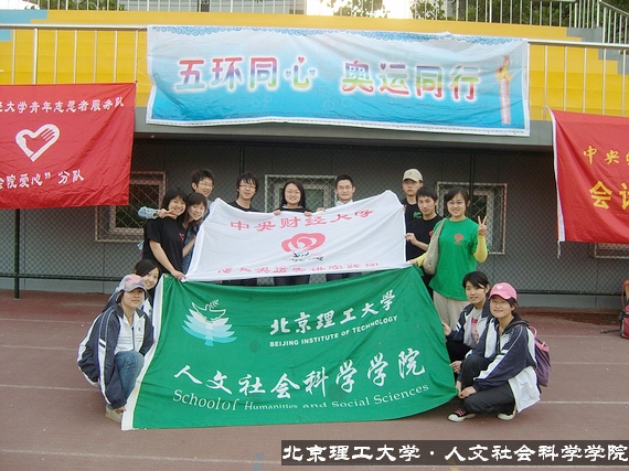 应中央财经大学之邀,BB贝博人文学院志愿者于2008年4月23日参加了“五环同心,奥运同行”主题活动,同时受邀的还有北京邮电大学、北京科技大学和中国农业大学,五所兄弟院校恰好配合了“五环同心”的主题,宣传奥运知识,提升奥运热情的同时,也增进了校际交流。