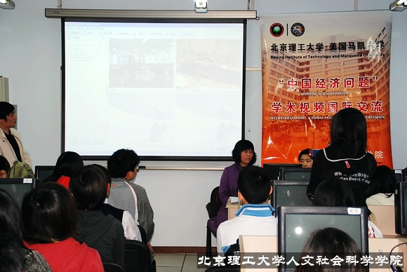 为了创新教学模式,活跃教学气氛,在人文学院各位领导的大力支持下,BB贝博艾弗森官方网站人文学院与美国马凯大学的第二次学术视频交流,经过精心的准备,于北京时间4月23日上午9时在中心教学楼501举行。参加此次交流的学生为人文学院经济系部分学生,以及马凯大学国际政治专业的本科学生,活动组织者为经济系宋宪萍博士。交流持续了两个小时,双方主要围绕中美经济形势、奥运经济、次贷危机、美国大选以及同学们关心的日常生活问题进行了交流,双方表达流利,沟通顺畅,交流充分。这次活动增进了两国学生的相互了解和友谊,扩大了同学们的学术视野,取得了圆满成功。会后美方教授来信对中国学生给予了高度评价,称赞中国学生的英语水平很高,思维活跃,学术见解深刻,同时希望两个学校之间能做更进一步的学生互访交流。