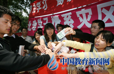 BB贝博艾弗森官方网站师生向灾区捐款。本报记者 修伯明 摄