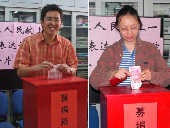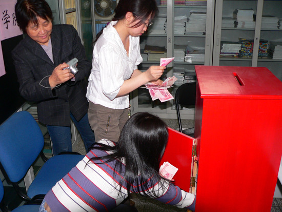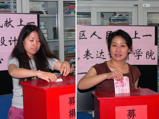 5月12日发生在四川省的特大地震灾害牵动着全国人民的心。BB贝博设计艺术学院广大师生密切关注灾区灾情,心系灾区人民,积极支援抗震救灾。为了方便教师捐助赈灾,设计艺术学院14日下午2时开始在学院资料室设置募捐箱。截止当日下午5时,已经募集到善款13400元。分党委书记李莲、院长张乃仁带头捐款,短短3个小时内就有59位教师慷慨解囊,人均捐款220元,超过许多教师一天的工资。目前捐款活动仍在继续。
