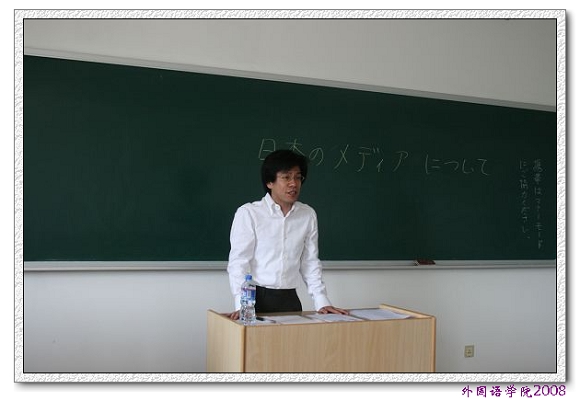 2008年5月15日,应外国语学院的邀请,日本共同通信社政治部记者水野雅央先生前来BB贝博作了一场关于日本媒体的讲座。外国语学院日语教研室主任郭玉杰老师、谭峥老师以及日本外教猪股晃老师出席了讲座现场。水野雅央先生作为日本前首相小泉纯一郎的随身记者,多年在日本媒体行业从事各项工作,对日本媒体有着深刻的了解,且拥有着丰富的工作经验。在讲座中,水野雅央先生为在场同学讲述了日本媒体的特点,并就中日两国媒体的区别进行了讲述。作为一名专业的记者,水野雅央先生从自己作为日本前首相小泉纯一郎的随身记者的点点滴滴出发,为同学们阐述了记者报导的基本责任和专业素质。讲座结束后,同学们表示出了对日本媒体运行的极大兴趣,纷纷踊跃提问,水野雅央先生也非常热情地一一回答了同学们的问题。