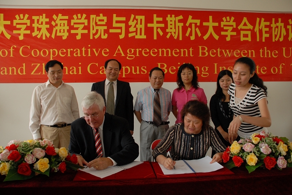 2008年5月18日,澳大利亚纽卡斯尔大学校长Nick Saunders教授和国际部业务主任刘勉访问珠海学院。此前珠海学院已与澳大利亚纽卡斯尔大学就联合培养本科生以及学术交流等方面达成初步意向,并签署了合作框架协议。