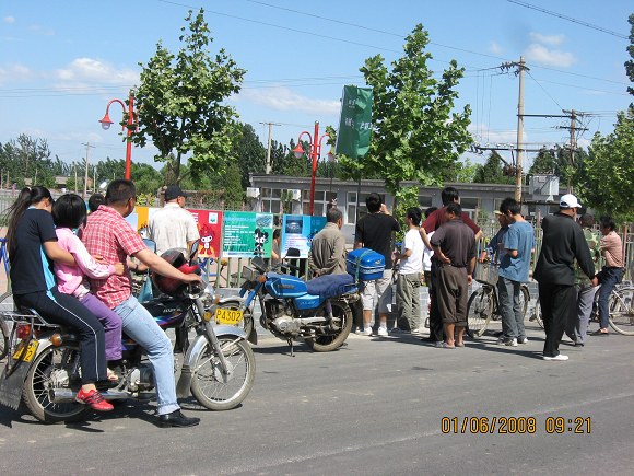 顺义区有奥运水上比赛场馆,为了让乡亲们了解顺义比赛的项目,我支部特地制作了展板来介绍这些项目,在小广场出口处的展板吸引了村民前来观看。