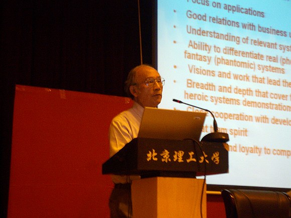 讲座中,除了学术方面的内容之外,厉院士与我们讲了很多他的人生体会,包括生活中的,工作中的。其中历院士提到工作与生活的乐趣,他说自己就把搞研究视为自己的乐趣,当他看到自己所开发的技术能够在全球广泛使用的时候,那就是他最大的乐趣。厉院士也告诫祖国的青年一代,要去从事你所喜欢的事情,并为此不断的努力。厉院士今年已经77岁,但身体十分硬朗,并且现在每天都工作到凌晨两三点,当厉院士谈到这里的时候,赢得了在场同学的一片片掌声。
