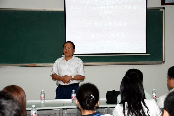 2008年6月12日晚7时, 人文社会科学研究生学术论坛第一场分论坛在研究生楼105教室举行,论坛邀请到了原中国残奥会理事、北京奥运培训顾问赵济华老师做主题演讲。人文学院党委书记张剑军教授,副书记、副院长贾利军老师,校团委张巍老师出席了本次论坛。